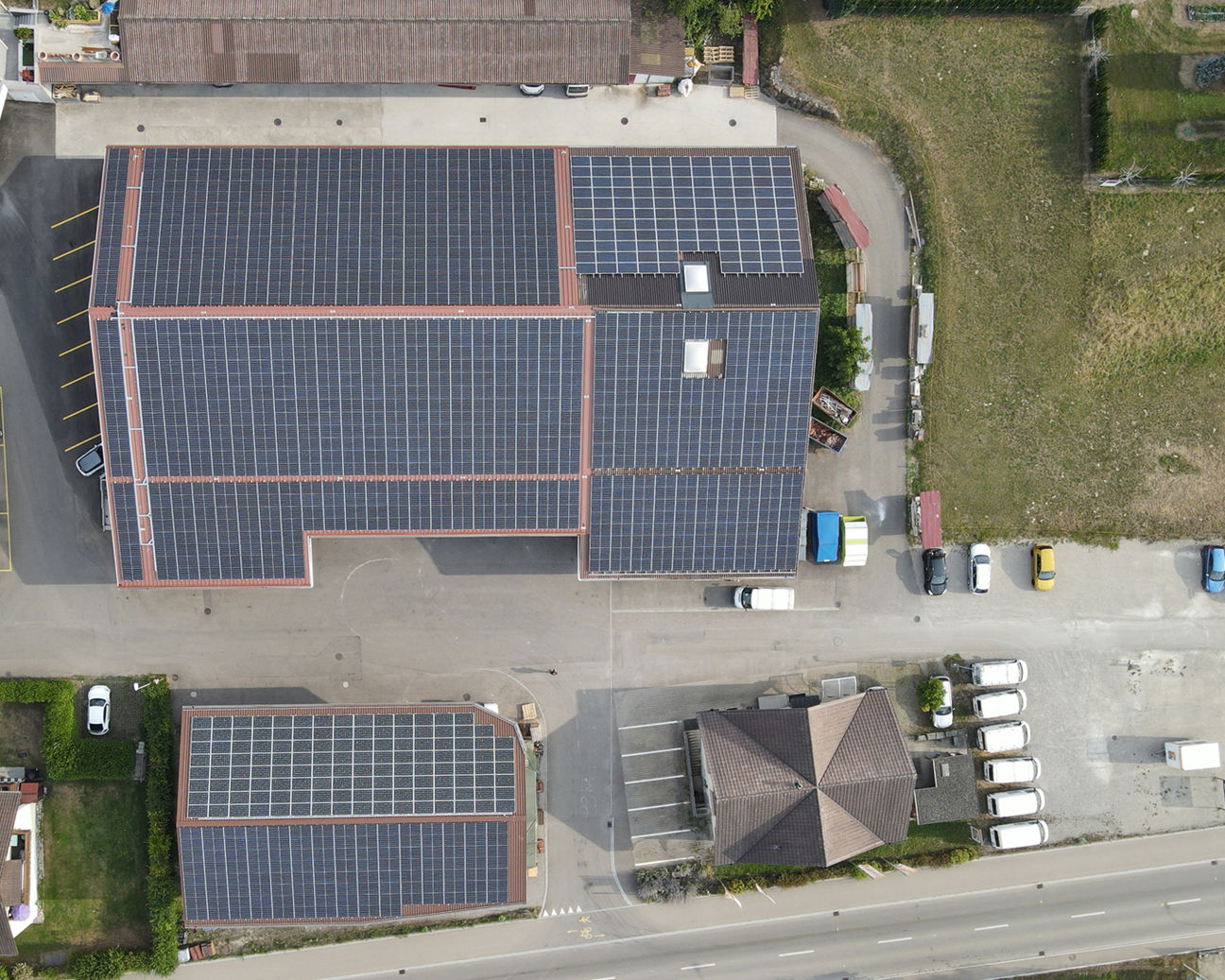 Dank RG Energietechnik AG und 2'000m2 Photovoltaikanlage auf unseren Dächern, ca. 420 KWp aus eigener Energieproduktion, sind unsere Akkus voll!